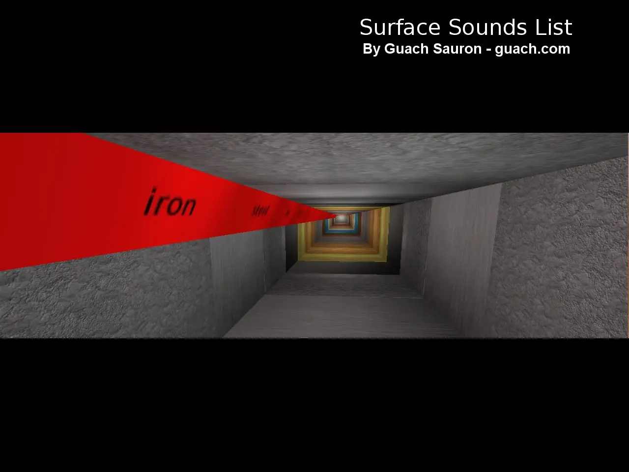 Este mapa no es para jugar, es para probar los surface sound, y ayudar al mapeador a elegir los que va a utilizar en su mapa.